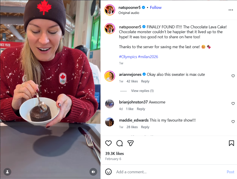 The tortino's popularity represents a continuation of a trend that began at the Paris 2024 Summer Olympics, where Norwegian swimmer Henrik Christiansen earned the nickname "Muffin Man" for his devotion to the Village's chocolate muffins. Athletes this year are filming taste tests in search of that dessert's successor and the tortino al cioccolato is emerging as the treat to beat.